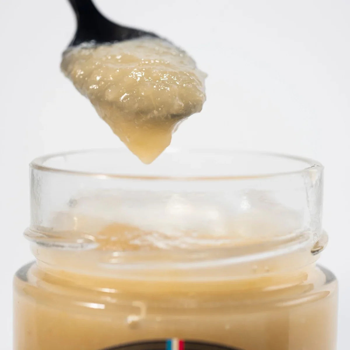 Dès l’ouverture du pot, le parfum subtil du citron se déploie avec une intensité fraîche et florale. En bouche, l’attaque est vive mais délicate, presque glacée comme un sorbet. La texture est soyeuse, légère, à la fois crémeuse et aérienne. La finale, d’une grande pureté, révèle une pointe d’amertume raffinée qui équilibre la douceur naturelle du fruit.