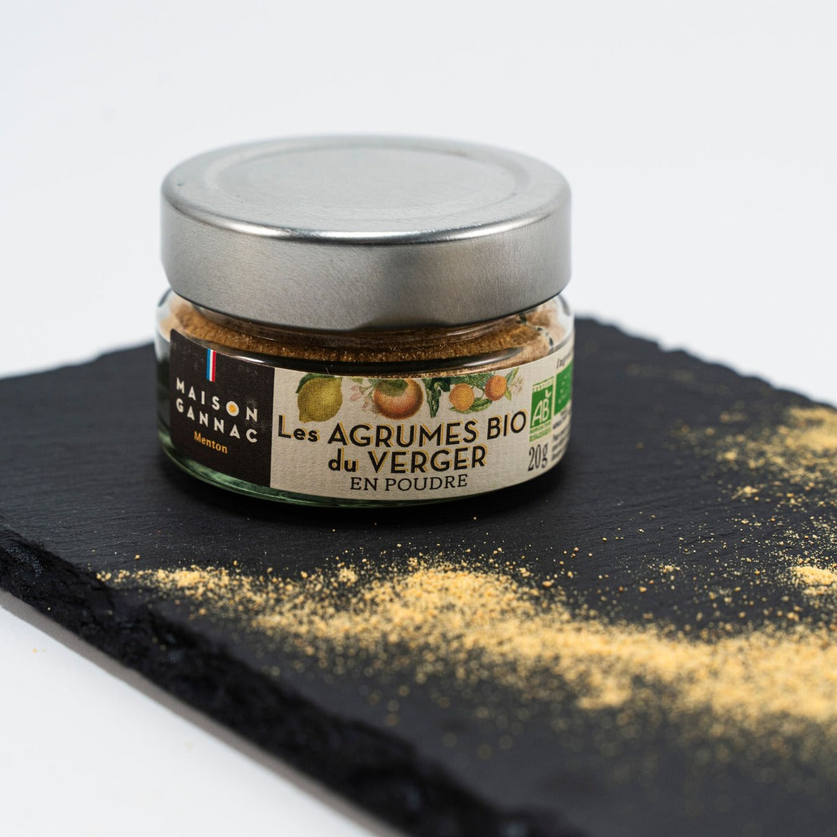La fabrication de la poudre se fait selon un savoir-faire artisanal : les agrumes BIO sont soigneusement sélectionnés, déshydratés puis réduits en poudre fine. Cette méthode permet de concentrer les saveurs et de préserver la richesse aromatique originale de chaque fruit, offrant un condiment à la fois naturel et polyvalent.