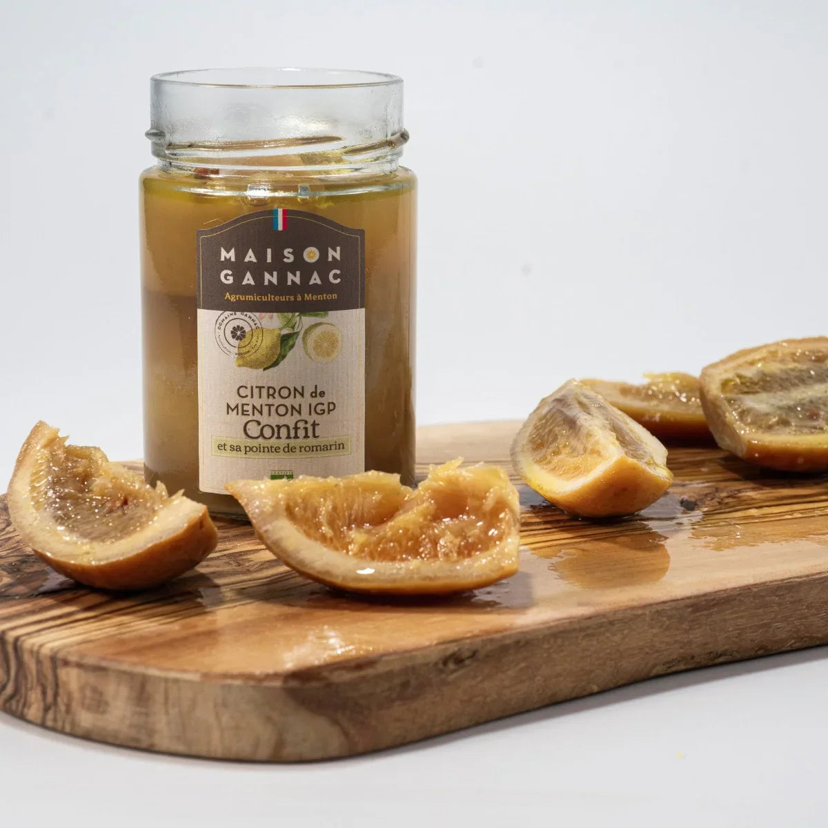 Depuis plus de 30 ans, Maison Gannac cultive ses agrumes biologiques sur le terroir ensoleillé de Menton, reconnu pour la finesse et la subtilité de ses citrons. Le savoir-faire artisanal repose sur des méthodes traditionnelles méditerranéennes : les citrons sont parfumés au romarin et au thym, puis confits au sel pour développer leurs arômes et leur caractère unique.