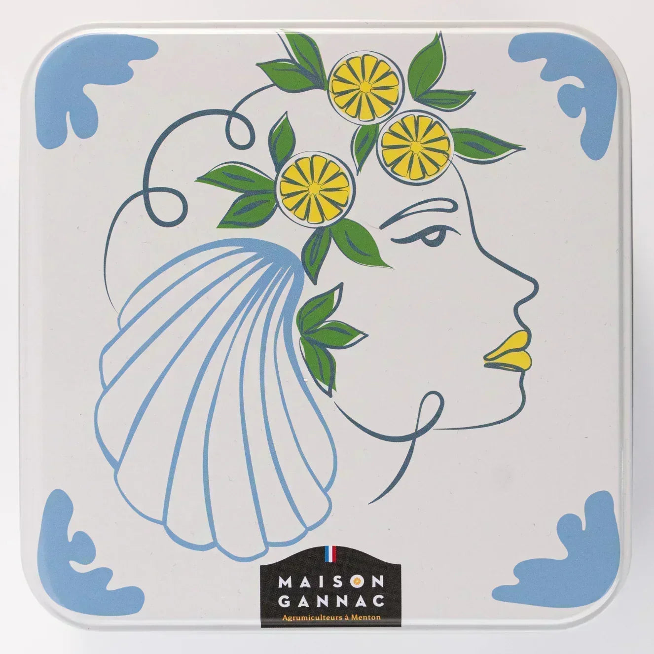 Découvrez notre boîte "Menton" désignée par une illustratrice mentonnaise, elle rend hommage à tous les artistes qui furent inspirés par notre French Riviera. Cette boîte en métal vous est proposée pour composer vos coffrets. Cette boîte mesure 16 x 16 x 9 cm
