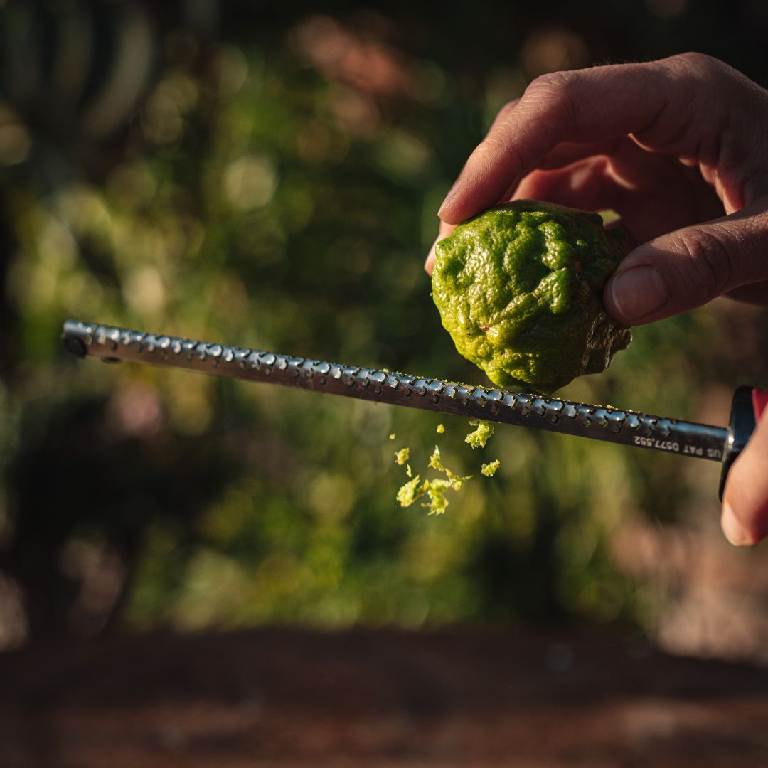 Sa peau bosselée renferme des arômes particuliers, très épicés et marqués qui rappellent la citronnelle et le gingembre. Le jus et le zeste de cet agrume aromatisent vos plats salés comme sucrés.