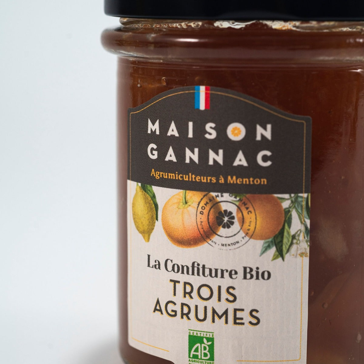 La confiture Trois Agrumes est le fruit d’un savoir-faire artisanal : les fruits sont sélectionnés à maturité, préparés avec soin dans notre atelier de Menton, puis cuits lentement en petits chaudrons de cuivre. La cuisson douce préserve les arômes et la texture naturelle des fruits, tout en révélant l’équilibre parfait entre acidité, douceur et amertume.