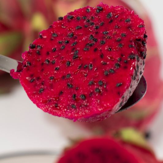 Le fruit du dragon, ou pitaya, attire d’abord le regard avec sa peau rose flamboyante et ses longues bractées vertes. Derrière cette allure exotique, il révèle une chair délicate et rafraîchissante.