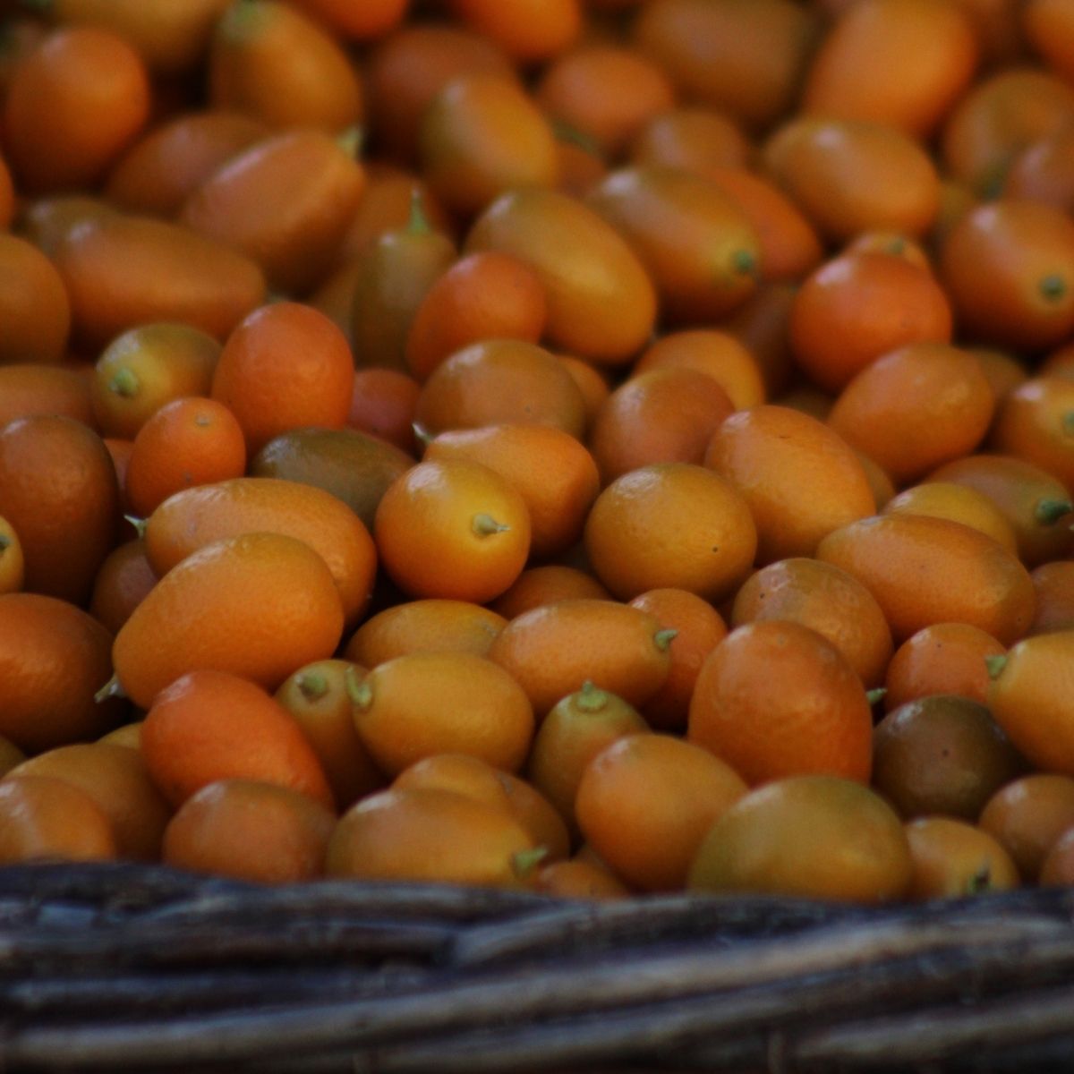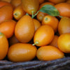 Petit fruit à la couleur orangée, le kumquat est originaire d’Asie. Son nom proviendrait du cantonnais « gam gwat » qui signifie « orange d’or ». Agrume à la chair tendre et acidulée, il vous surprendra par sa douceur et son goût affirmé, si vous n'avez pas encore goûté. Les kumquats se consomment entièrement avec l'écorce. A consommer frais, ils peuvent aussi être cuits entiers en compote ou en confiture.