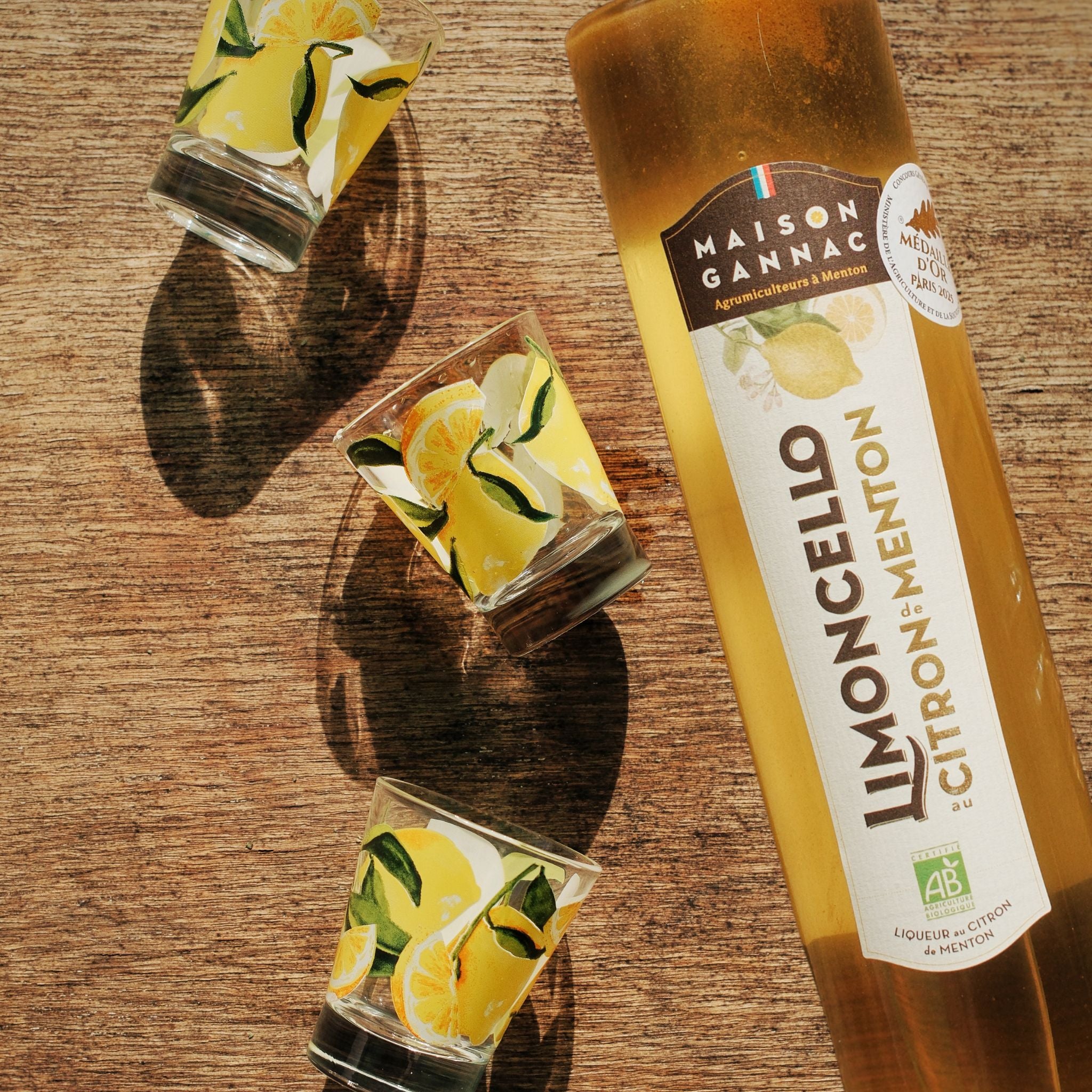 Le Limoncello est une liqueur italienne traditionnelle, Menton situé à la frontière, en a hérité. Chez Maison Gannac, notre Limoncello BIO au Citron de Menton IGP est élaboré uniquement avec le zeste de nos citrons de Menton IGP BIO, riche en huiles essentielles. Artisanal, raffiné et certifié BIO, il a été récompensé par une médaille d’or au Concours Général Agricole 2025. Nos liqueurs artisanales (à base d’agrumes et de fleurs) sont infusées dans un alcool agricole pour révéler des saveurs authentiques, offrant un véritable voyage au cœur de nos vergers mentonnais.