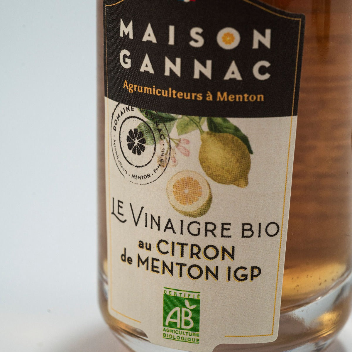 Depuis plus de 30 ans, Maison Gannac cultive ses citrons de Menton IGP BIO dans le terroir unique de Menton, au microclimat exceptionnel qui donne aux agrumes un parfum fin et intense. Pressés avec soin, leurs zestes et leurs jus infusent lentement le vinaigre bio, libérant une intensité aromatique qui en fait un condiment rare, authentique et profondément lié à son terroir.